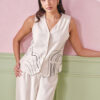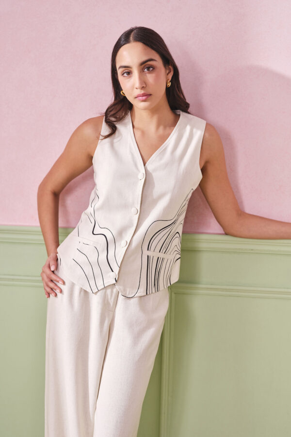 Add a touch of whimsy to your work wardrobe with this fabulous white on white co-ord set, elevated with a quirky pattern. Don’t forget to accessorise with a stylish necklace and peep toes for a complete office-ready ensemble!