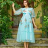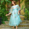 Turquoise Floral handpainted Dress